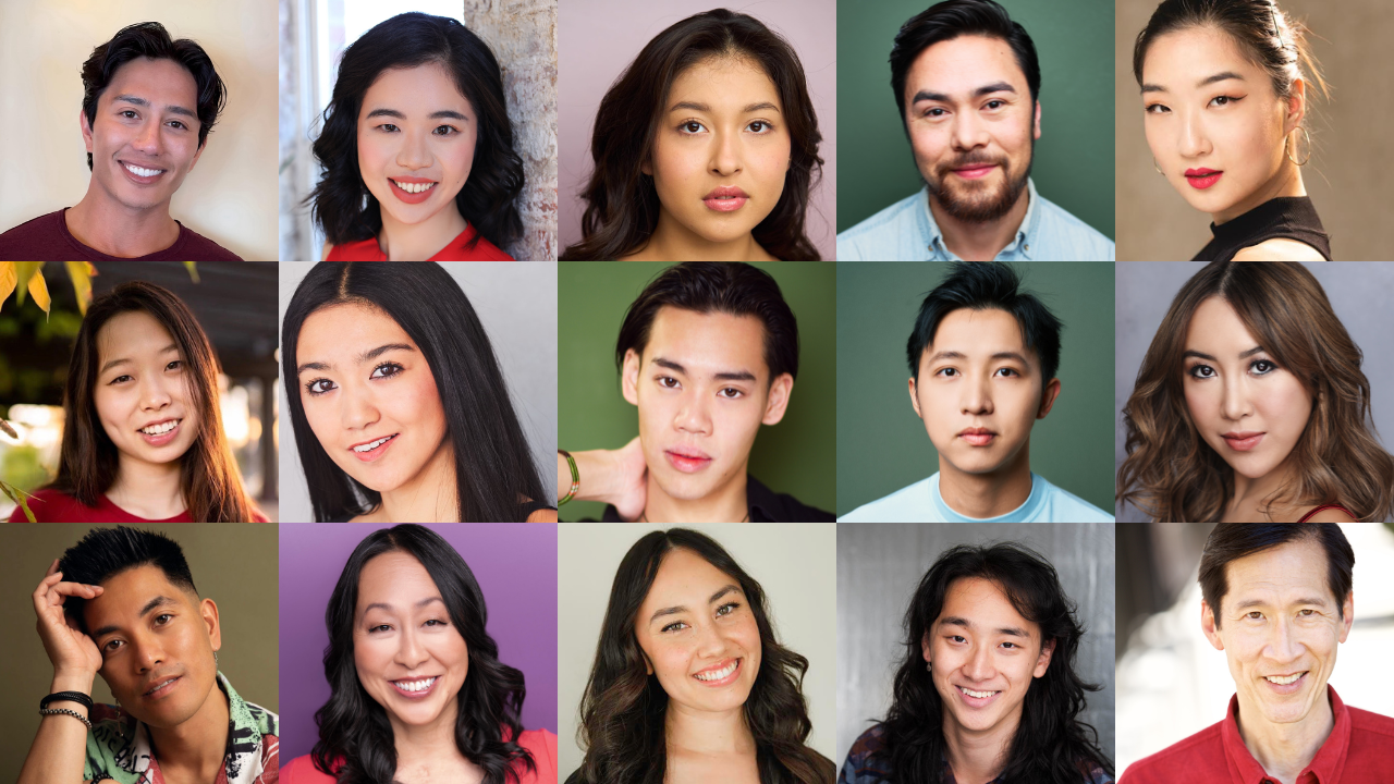The ensemble/understudy cast of RODGERS AND HAMMERSTEIN’S FLOWER DRUM SONG at East West Players. Top (L-R): Joven Calloway, Ai Toyoshima, Avelina Sanchez, Brian Liebson, Esther Lee, Emma Park, Gemma Pedersen, Ethan Yaheen-Moy Chan, Haoyi Wen, Hillary Tang, IJay Espinoza, Sally Hong, Sierra Goria, Tony Jin, and Paul Wong.